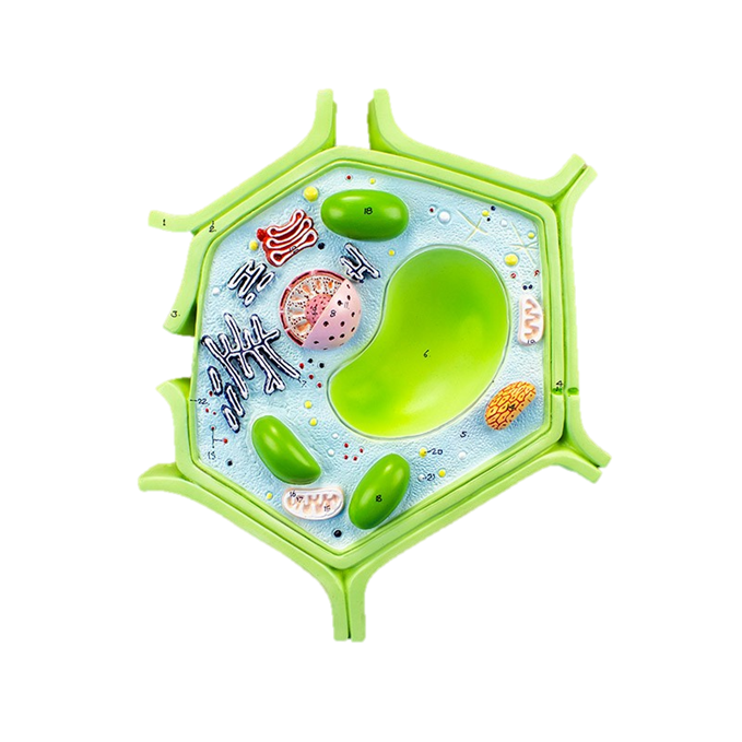 - Barevný model rostlinné buňky z odolného plastu, připevněný k podstavci.