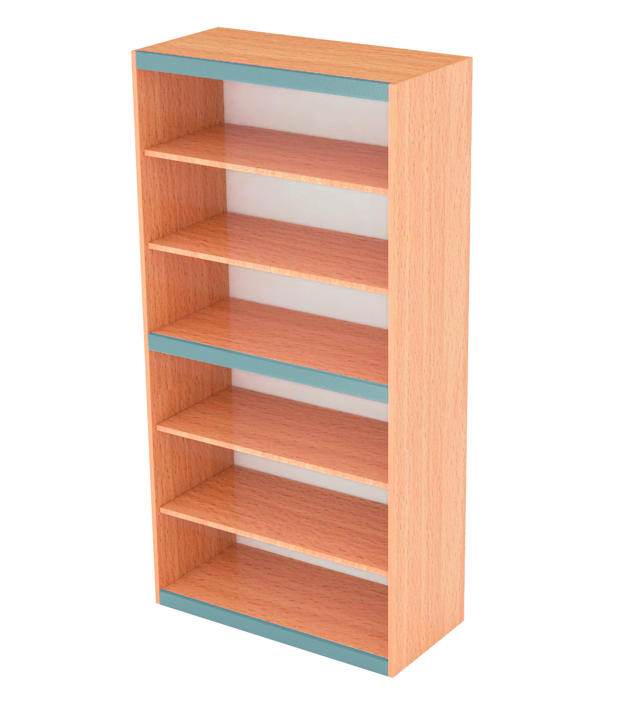 Skříň má pět polic, jednu pevnou a ostatní výškově přestavitelné. Skříň je otevřená (bez dvířek).