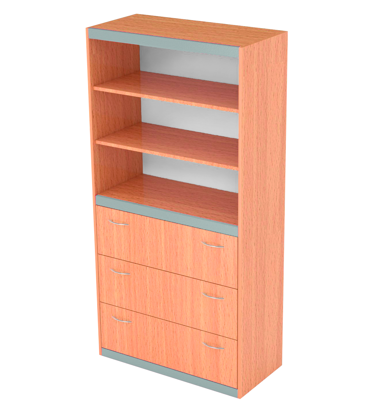 Kancelářská skříň s kovovou výztuhou, která je povrchově upravena práškovou vypalovanou barvou v barevné škále RAL.
