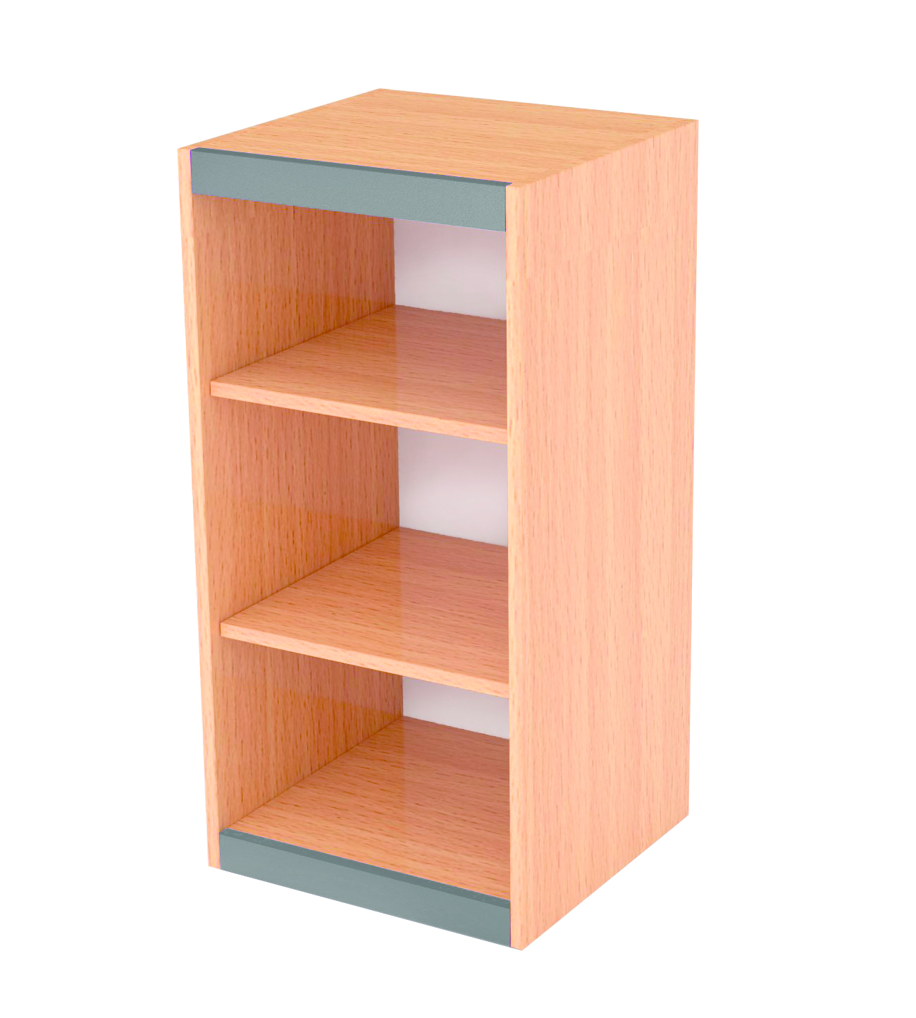Skříň má dvě výškově přestavitelné police. Skříň je otevřená (bez dvířek).