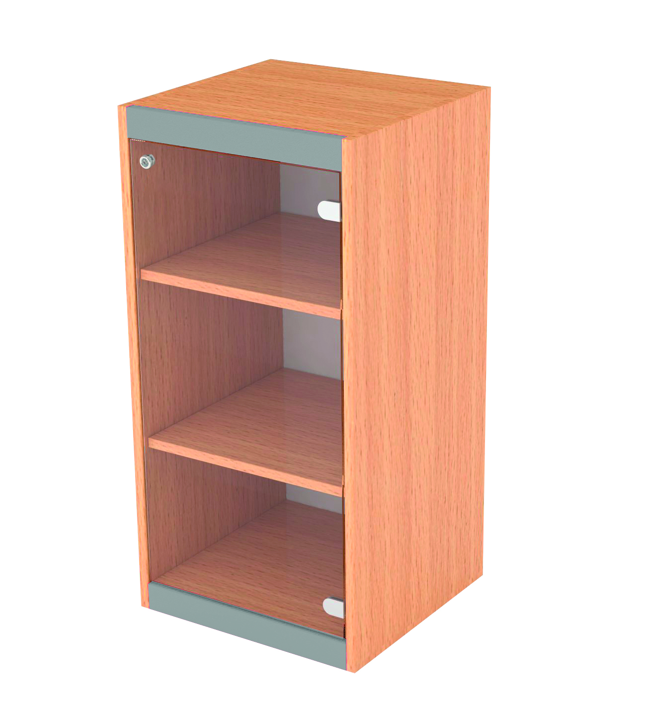 Rozměr skříně je 90x45x43cm (výška x šířka x hloubka). Skříň má dvě výškově přestavitelné police. Skříň je uzavřena skleněnými dvířky, jejichž směr otvírání je vpravo (pravé dveře).