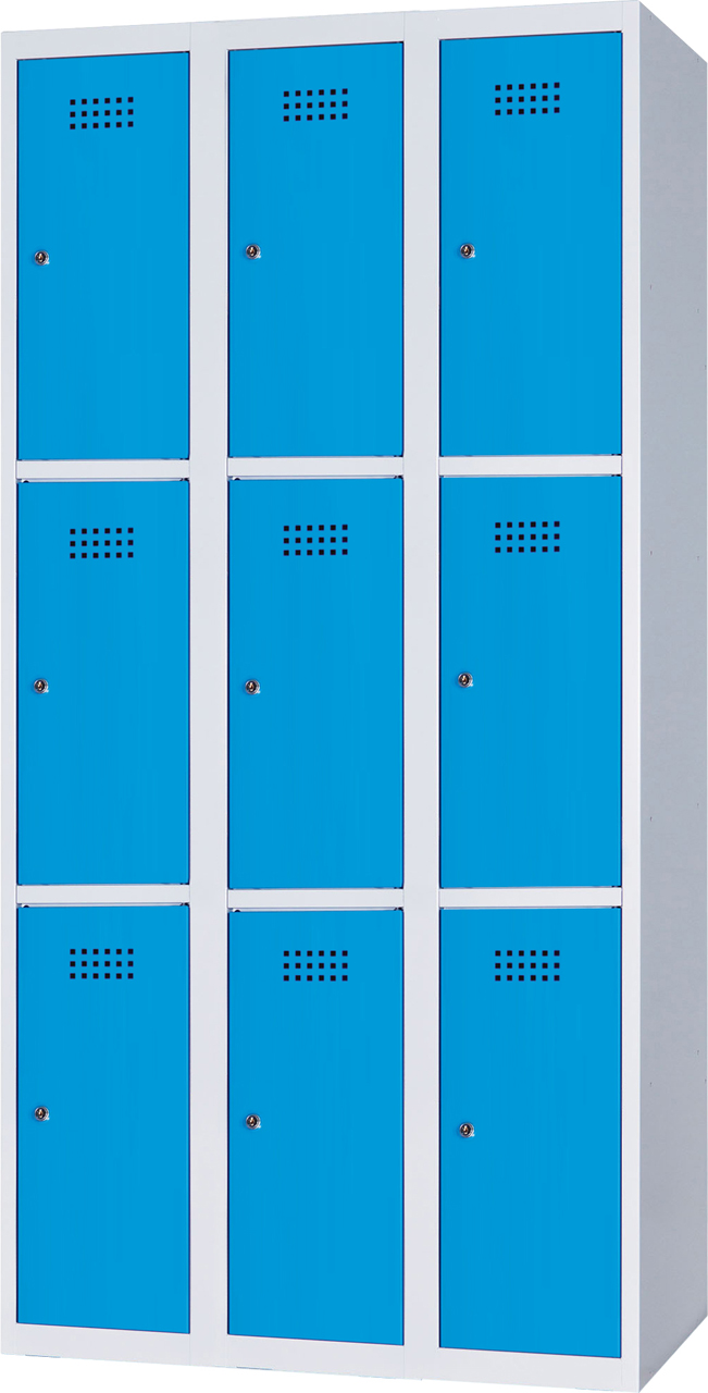 Kovové šatní skříně a boxy jsou vyrobeny z kvalitního ocelového plechu a splňují protipožární a bezpečnostní předpisy. Základní barevné provedení korpusu je šedá RAL 7035 a dveře modrá RAL 5012 nebo šedá RAL 7035.