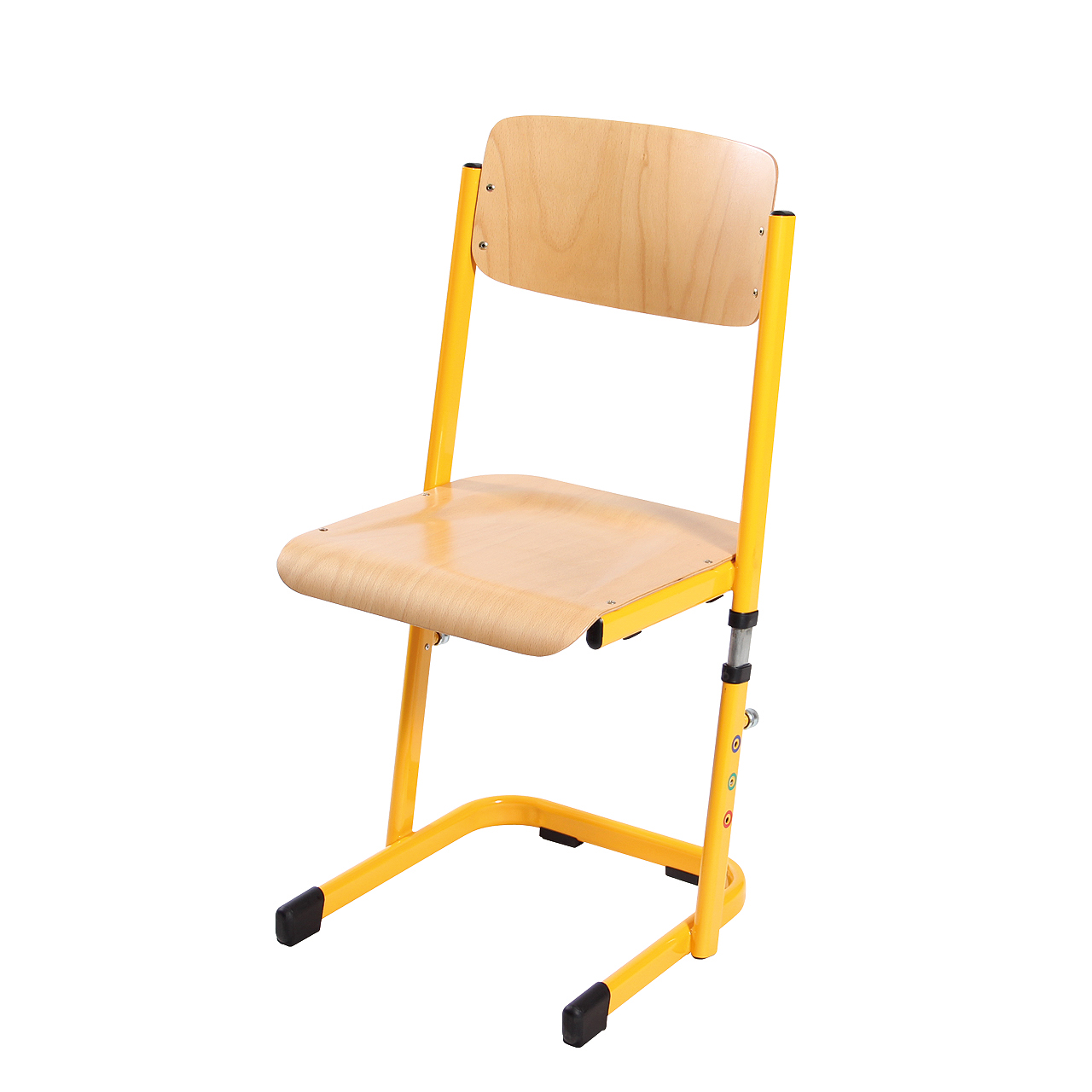 - Jedná se o praktickou VÝŠKOVĚ STAVITELNOU školní židli s kovovou plochoválnou podnoží s BUKOVÝM sedákem a opěrákem.