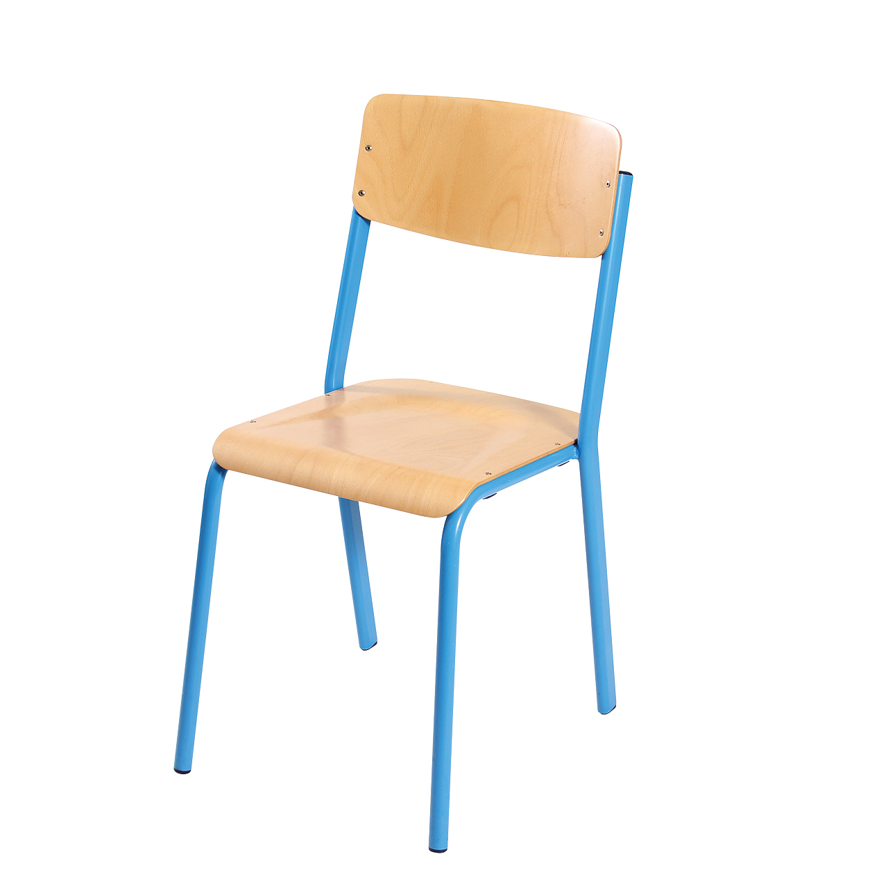 - Jedná se o praktickou školní židli s kovovou trubkovou podnoží s BUKOVÝM sedákem a opěrákem.