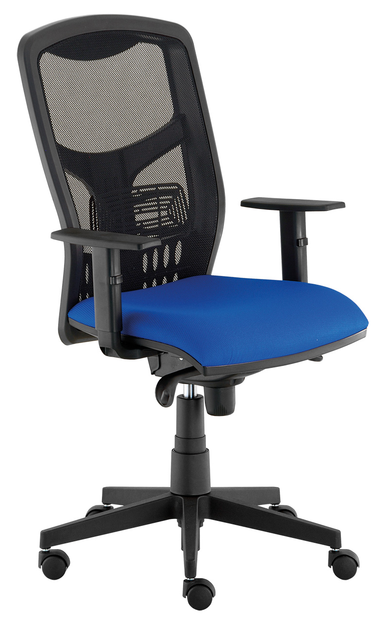 Jedná se o KANCELÁŘSKOU židli s podnoží na plynovém pístu a ČALOUNĚNÝM sedákem a prodyšným opěrákem s možností bederní opěrky.