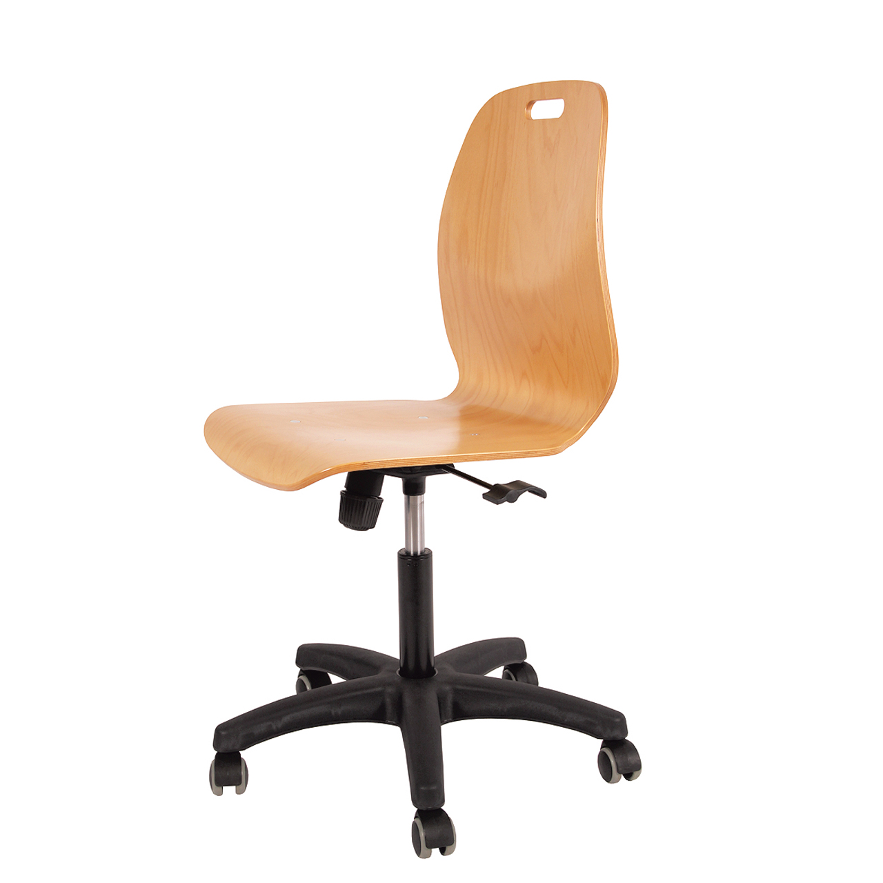 Jedná se o moderní výškově stavitelnou židli na plynovém pístu s CELODŘEVĚNOU skořepinou.
