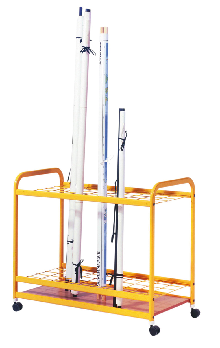 Pojízdný stojan na mapy o rozměrech 86 x 100 x 54 cm.