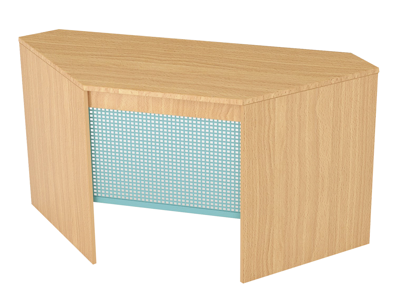 Jedná se o dvoumístný stůl v kombinaci dřevo/kov určen pro skládání sestav v jazykových učebnách.