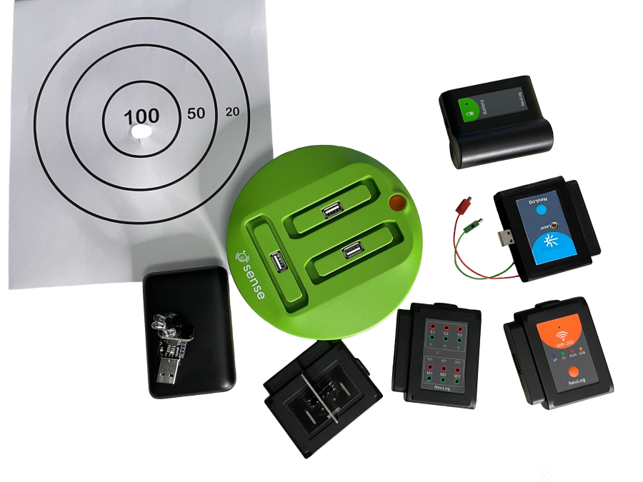Vyzkoušejte střelecké vlohy robota na infračervené střelnici. Postavte terč s vloženým infrazářičem ve vzdálenosti cca 1 m od robota. Osaďte jej laserovým modulem a aktivujte program LASER GAME. Robot v rotaci kolem své osy vyhledá cíl, který zasáhne laserovým paprskem. Zaznamenejte průměrnou přesnost jeho střelby nebo zjistěte jak se mění přesnost zásahů s proměnnou vzdáleností robota od terče.