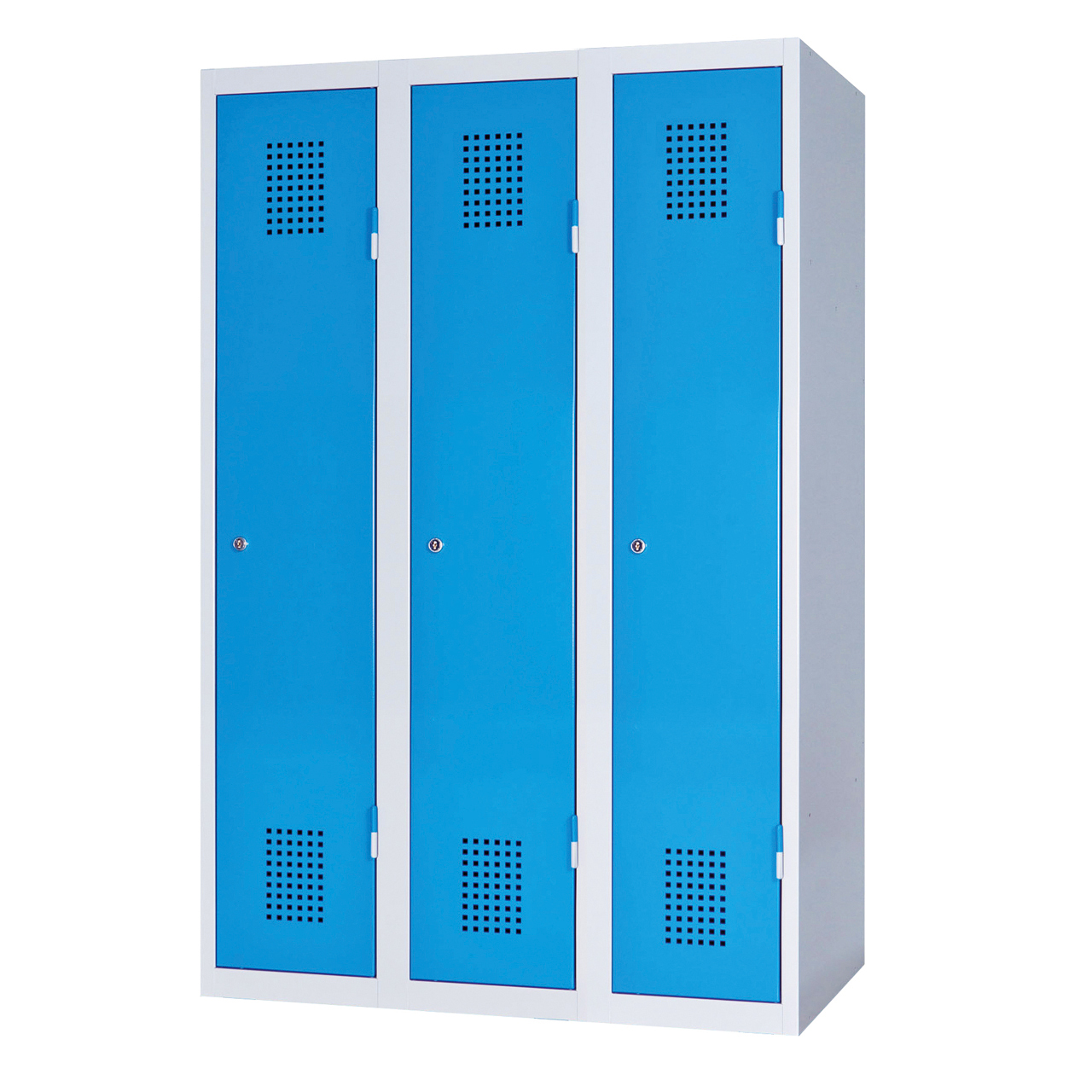 • Kovové šatní skříně a boxy jsou vyrobeny z kvalitního ocelového plechu a splňují protipožární a bezpečnostní předpisy. Základní barevné provedení korpusu je šedá RAL 7035 a dveře modrá RAL 5012 nebo šedá RAL 7035.