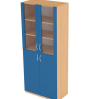 Skříň s náklopnými policemi a proskleným horním dílem 180 x 90 x 43 cm